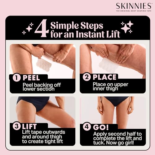 • As Seen on Shark Tank - Over 2 Million Products Sold: With over 2 million units sold and a feature on Shark Tank, Skinnies is the original and trusted name in skin tape for loose skin. When you want results you can see, count on Skinnies Instant Lift Thigh Tape to deliver subtle shaping magic with every application.