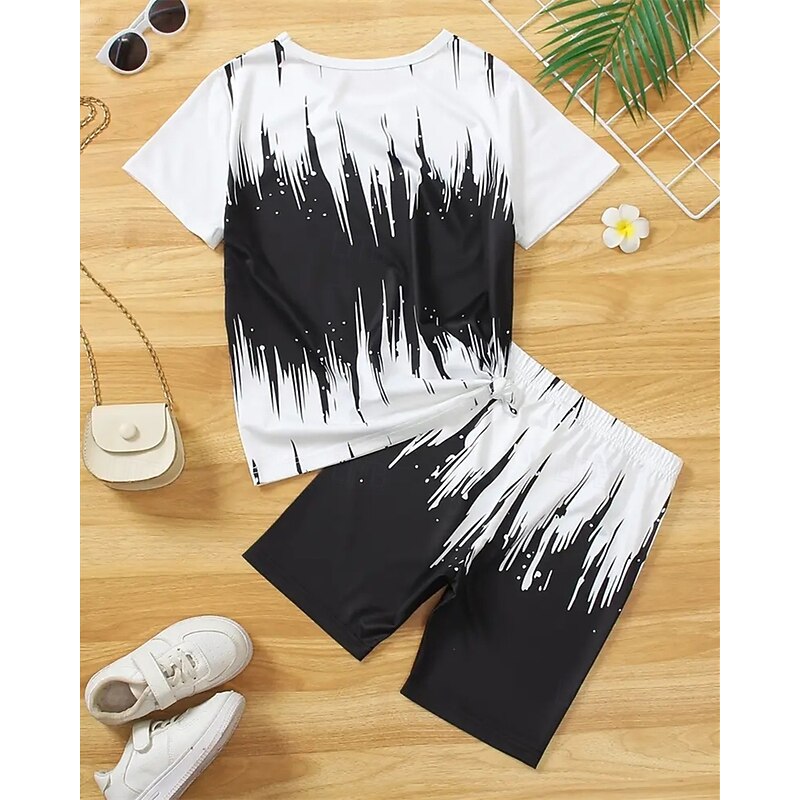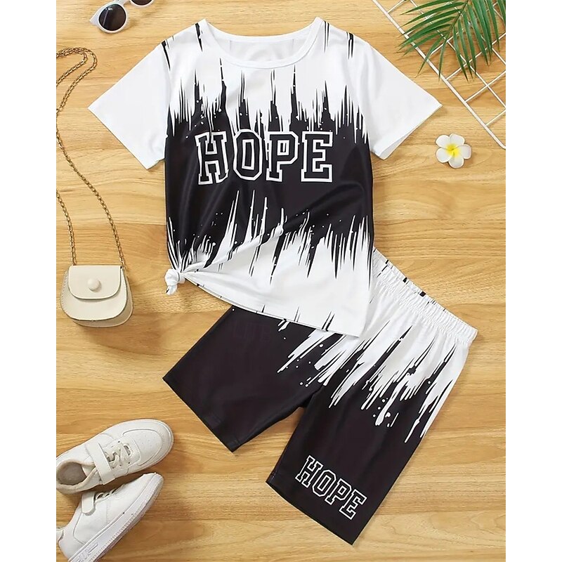 HOT ! Girls' 3D Letter T-shirt & Shorts Set Short Sleeve Summer Spring Sports Fashion Daily Kids 4-12 Years Crew Neck Outdoor Vacation Sports Tailored Fit