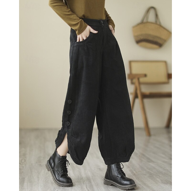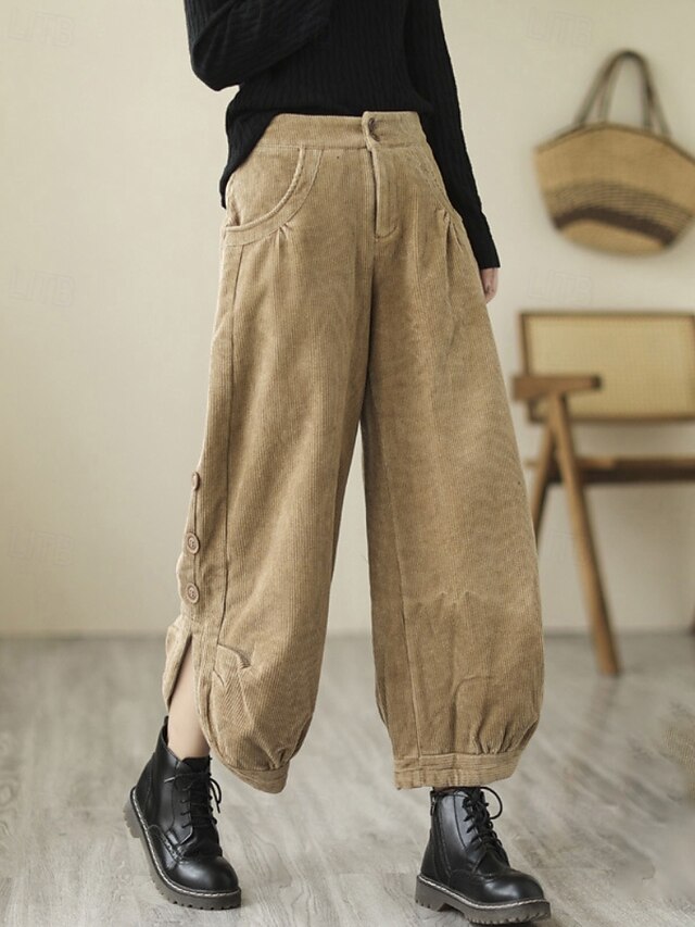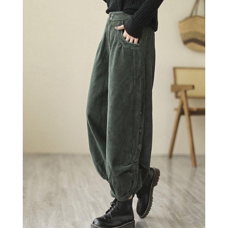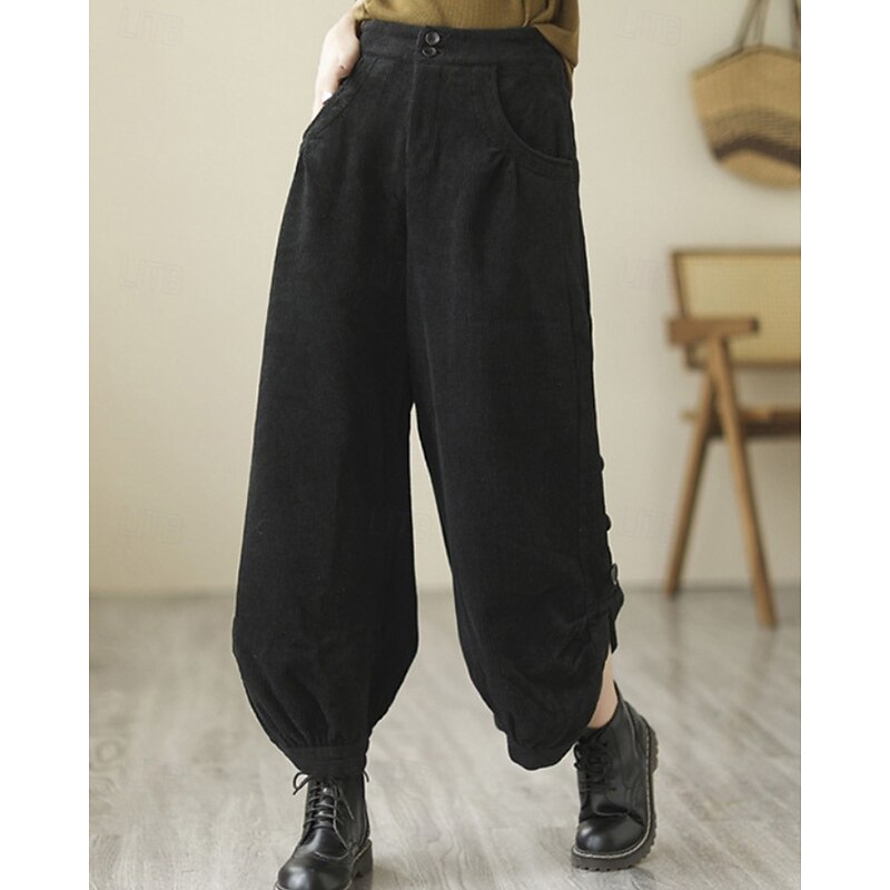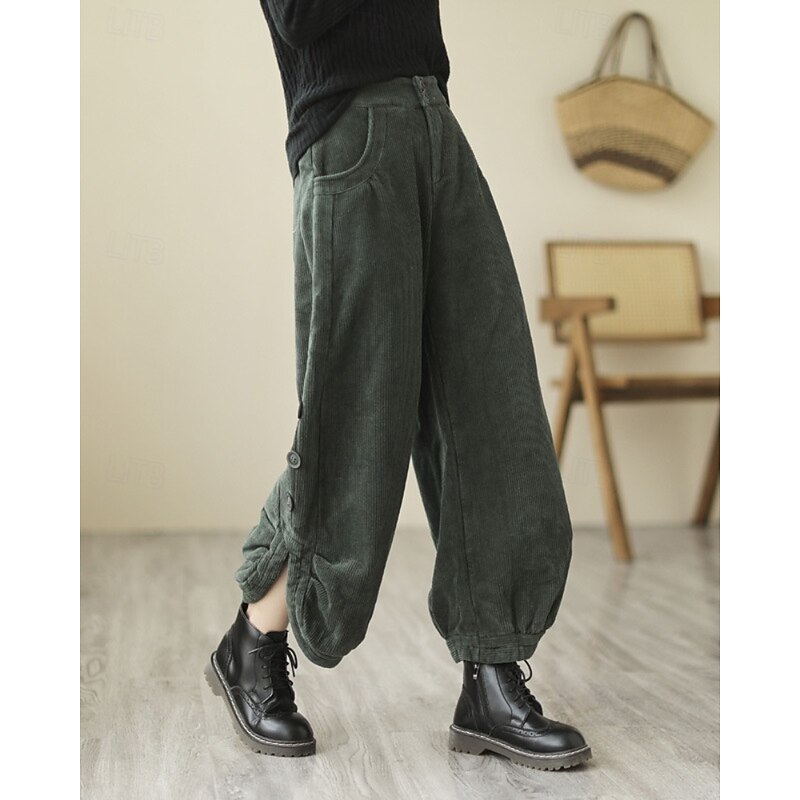 More information about Women's Chinos Bloomers Streetwear Casual Full Length Medium Waist Plain Pocket Elastic Waist Comfortable Micro-elastic Outdoor Vacation Street Black Green Coffee Fall Winter Regular Fit