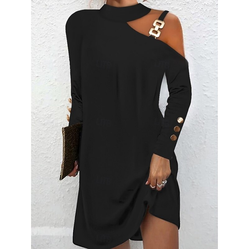 HOT ! Women's Mini Dress Sheath Dress Casual Daily Regular Fit Plain Long Sleeve Halter Neck Black White Pink Blue Summer Fall