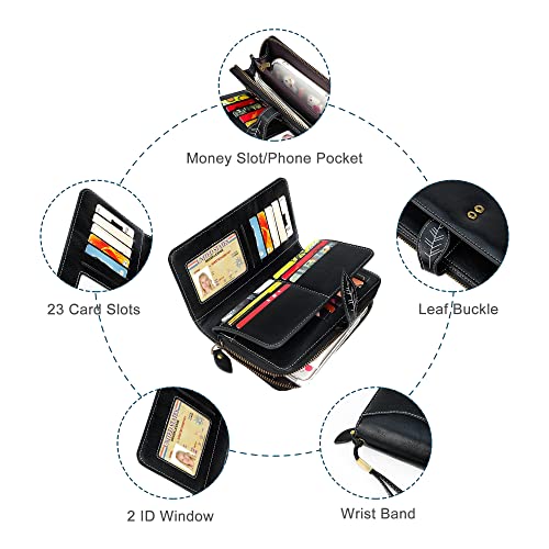 • ❀ Womens Wallets Large Capacity - This big wallets for women contains 23 card slots, 2 ID windows, 4 receipt slots, 1 Huge Zipper Pocket. Roomy enough for carry phone, cash, credit cards, ID cards, health card, coins, driver license, checkbook or families' photo etc.