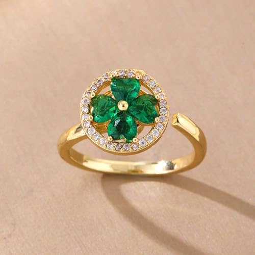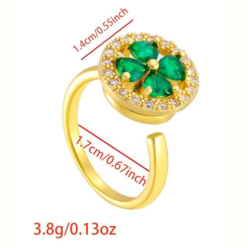 HOT ! Round CZ Heart Clover Leaf Rotating Statement Ring for Women Gold Plated Adjustable Expandable 4 Leaves Open Wrap Anxiety Rings Comfort Fit Dainty Wedding Holiday Anniversary Jewelry Gift