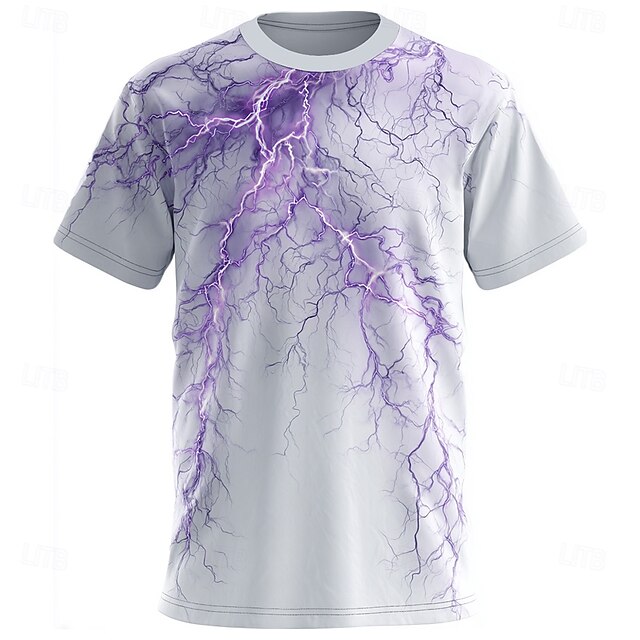 More information about Men's Optical Illusion Lightning 3D T Shirt Short Sleeve T shirt 3D Print Crew Neck Shirt Exaggerated Designer Party Street Casual Deep Purple White 1 White Summer Spring All Seasons Clothing Apparel