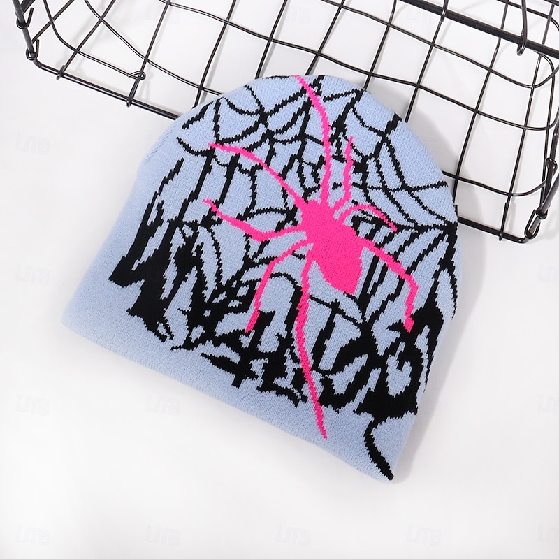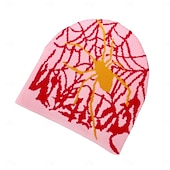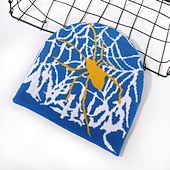 More information about Men's Unisex Beanie Hat Winter Hats Beanies Skull Cap Knit Hat Light Blue Black Acrylic Fibers Jacquard Knitted Cozy Halloween Daily Wear Festival Spider Spider web Warm