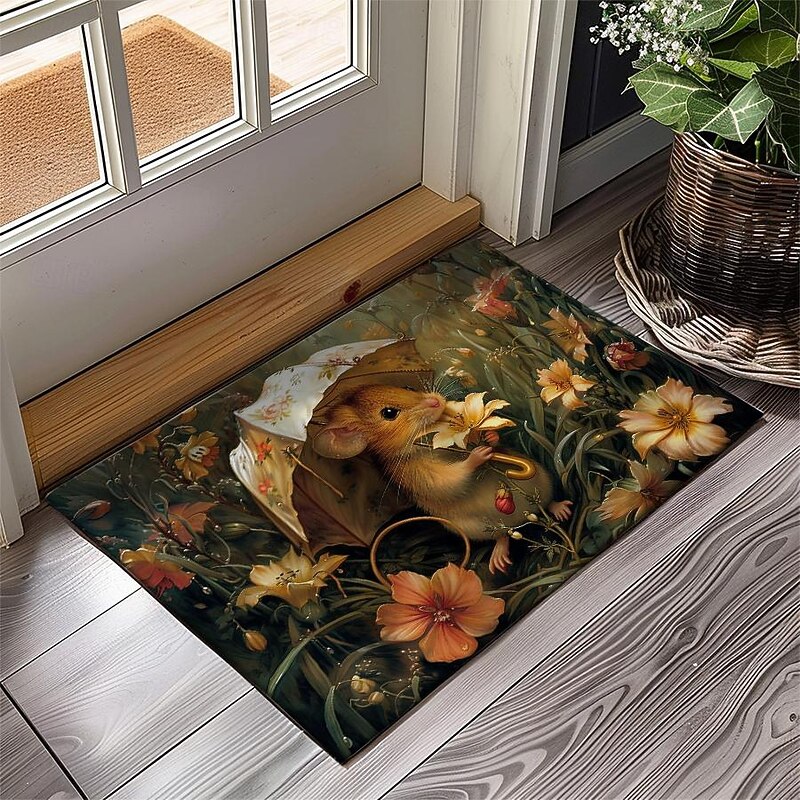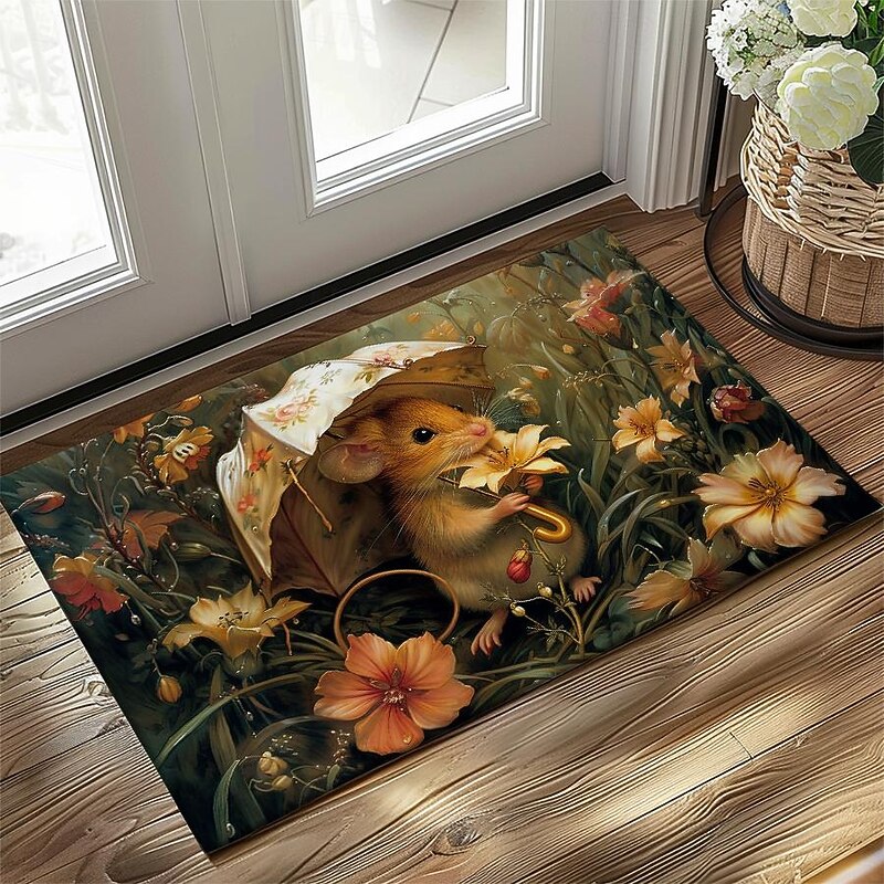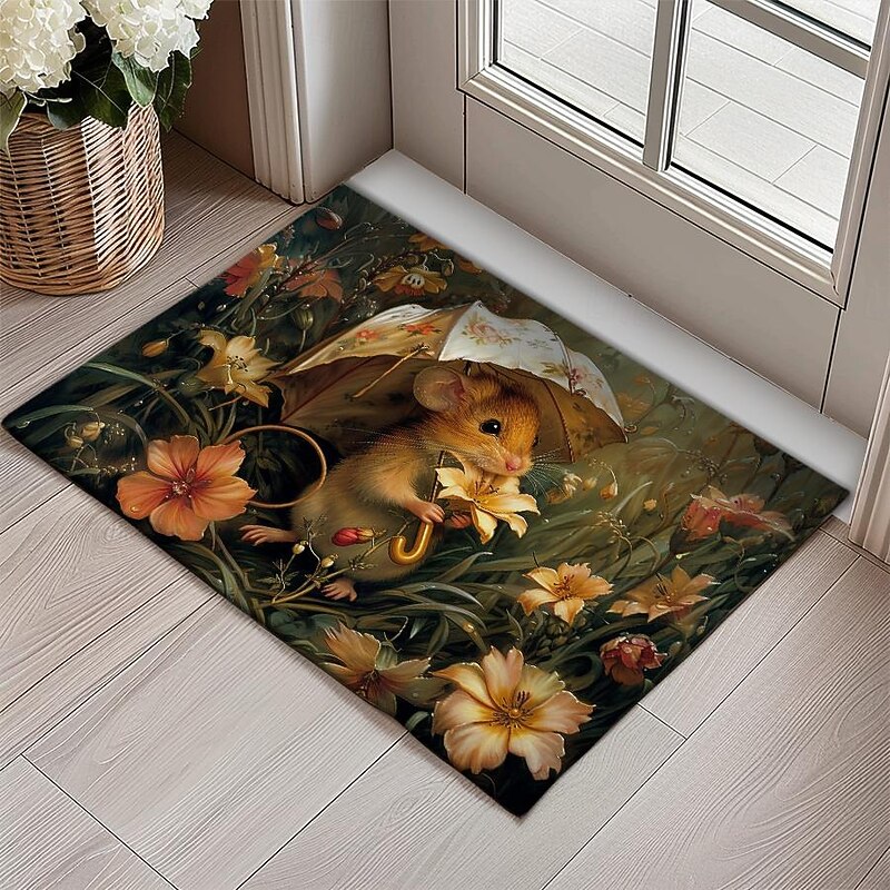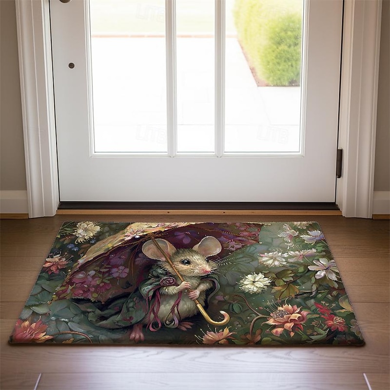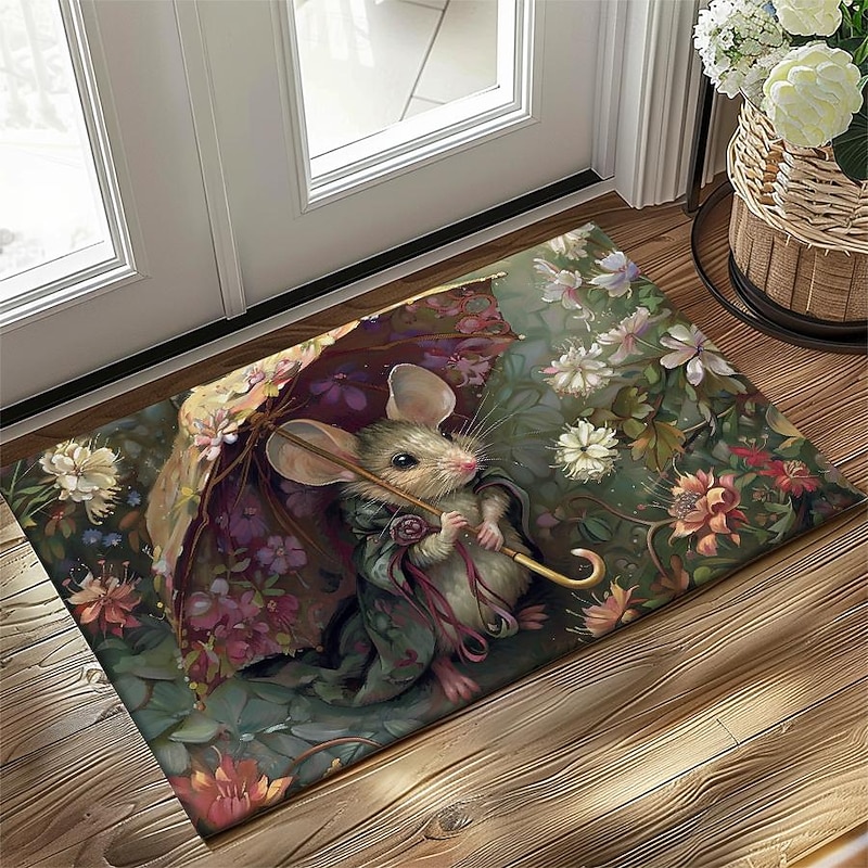 Small Rat Umbrella Doormat Floor Mats Washable Rugs Kitchen Mat Non-Slip Oil Proof Rug Indoor Outdoor Mat Bedroom Decor Bathroom Mat Entrance Rug