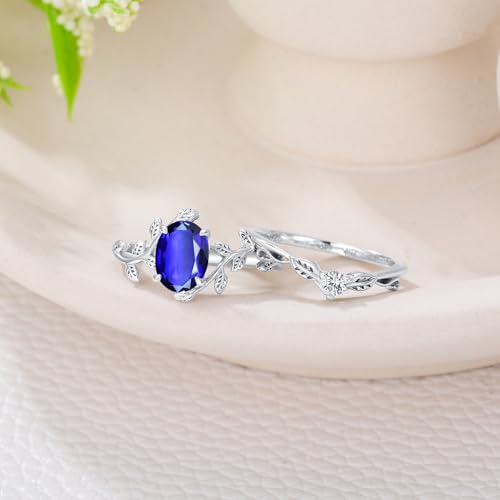 Oval Shaped Gemstone Engagement Rings Set for Women 925 Sterling Silver,8x6 MM Amethyst Leaf Ring Unique Bridal Wedding Rings Size 3-13 5