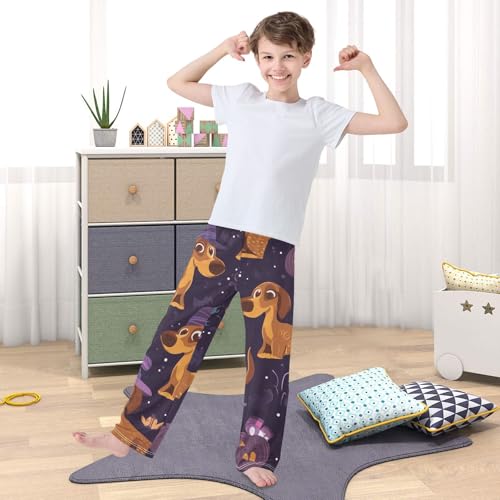 More information about ZZXXB Dachshund Spider Web Boys Long Pants Soft Trousers Elastic Waist Kids Lounge Bottoms with Pockets S-XL
