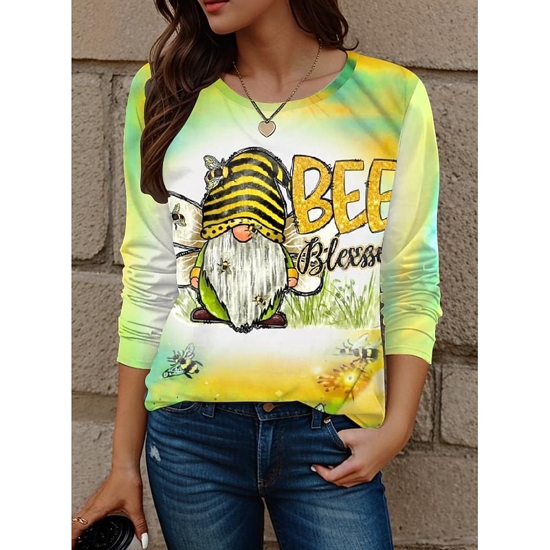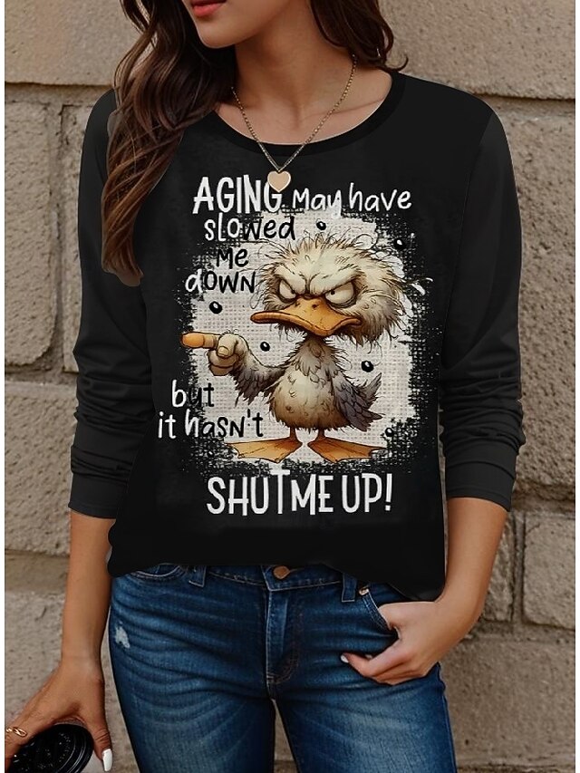 HOT ! Women's T Shirt Letter Casual Regular Tops Daily Print Black White Yellow Spring Fall