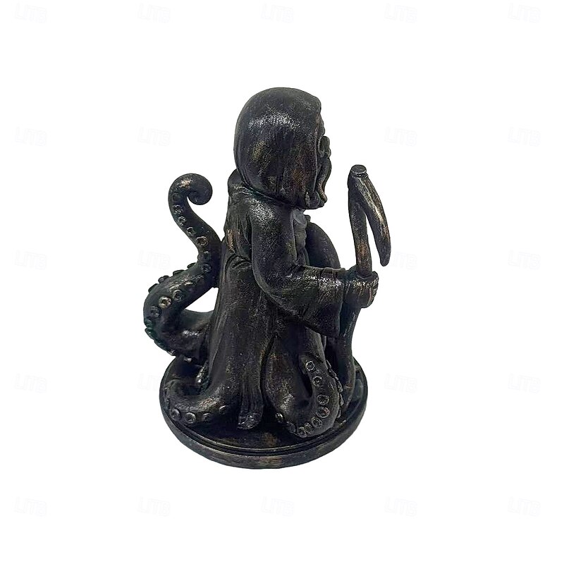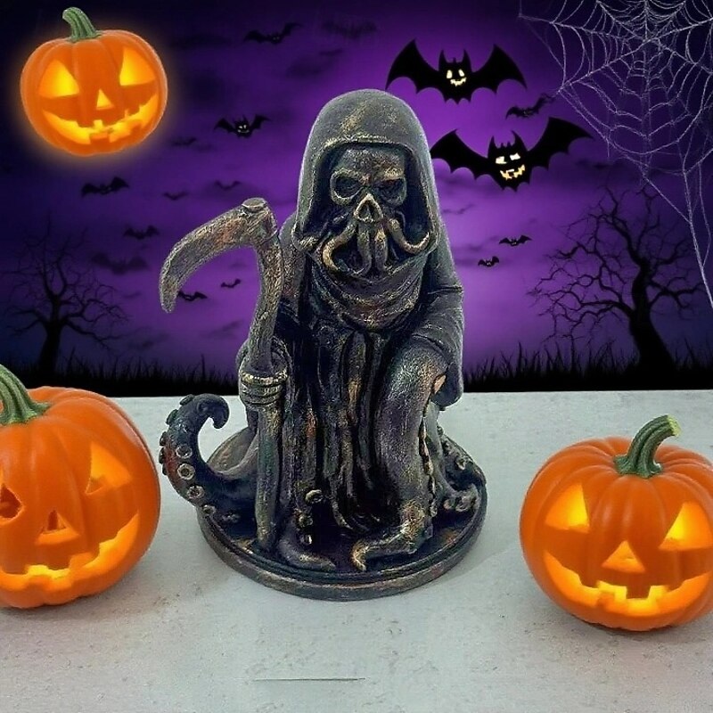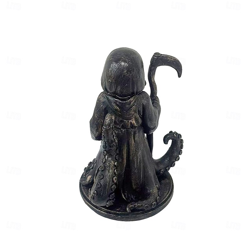 HOT ! Skeleton Death Statue Halloween Gothic Resin Skeleton Grim Reaper Octopus Statue Decor Small Reaper Figurine of Holy Death for Patio Lawn Home Bedroom Bookshelf