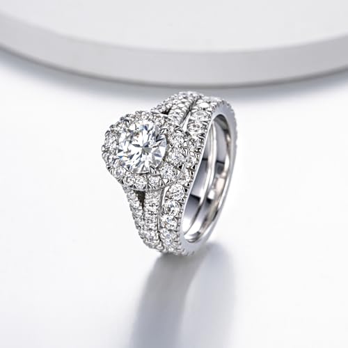 Split Shank D Color Moisssanite Wedding Rings Sets for Women (2.66cttw) Platinum Plated 925 Silver 6