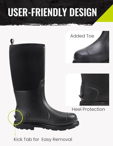 TIDEWE Rubber Work Boot for Men with Steel Shank, Waterproof Anti Slip Hunting Boot, Warm 6mm Neoprene Hunting Mud Boot, Sturdy Black Rubber Boot for Farming, Gardening, Fishing, Size 6-14 3