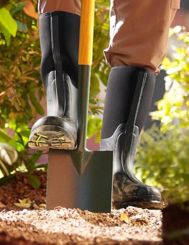 TIDEWE Rubber Work Boot for Men with Steel Shank, Waterproof Anti Slip Hunting Boot, Warm 6mm Neoprene Hunting Mud Boot, Sturdy Black Rubber Boot for Farming, Gardening, Fishing, Size 6-14 4