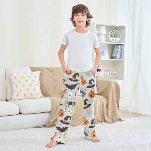 Spider Bat Pumpkin Boys Long Pants Soft Trousers Elastic Waist Kids Lounge Bottoms with Pockets S-XL 5