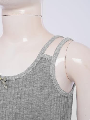 Kids Girls Double Strap Camisole Sleeveless Bow Detail Lettuce Hem Striped Undershirt for Street Style 2-12 Years 5