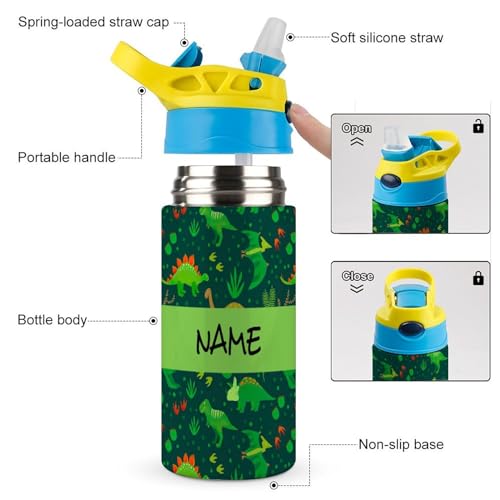 Custom Green Cute Dinosaur Backpacks 4 Piece Set Personalized Add Name Backpack with Lunch Bag Pencil Bag Kids Water Bottle Customization School Book Bags for Boys Girls 3