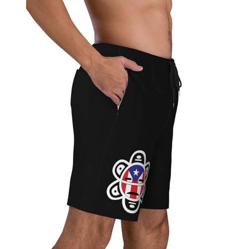 HOT ! Puerto Rico Flag Sun Tribal Sol Taino Mens Swim Trunks Quick Dry Board Shorts 7" - Hawaii Beach Swimwear