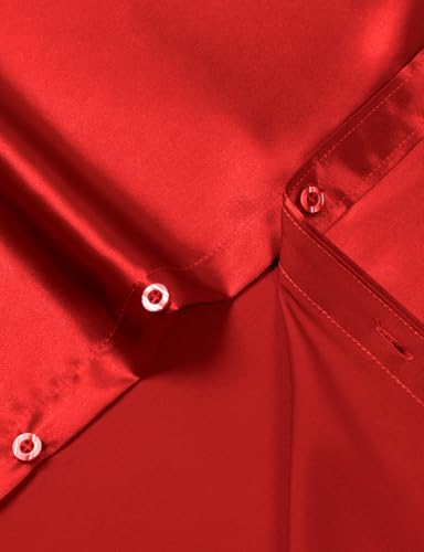More information about Mens Shiny Luxury Satin Slim Fit Dress Shirts Silk-Like Glossy Long Sleeve Button Down Shirts for Wedding Party Prom