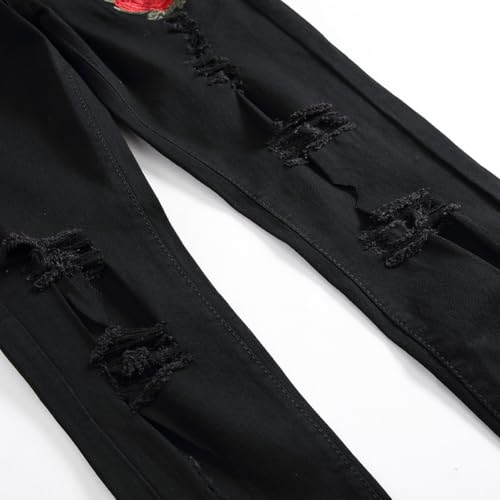 XYGJZ Men's Regular Slim Fit Jeans Ripped Distressed Destroyed Jean Rose Embroidered Pants 6