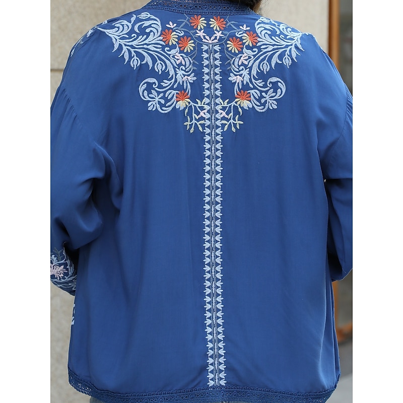 Women's Boho Shirt Shrugs Floral Flower Casual Boho Long Sleeve Bell Sleeve Asymmetrical Regular Tops Valentine's Day Work Daily Embroidered Blue All Seasons 4