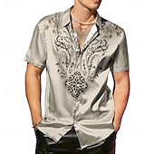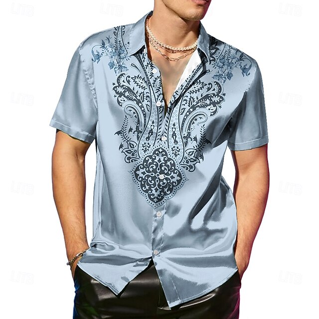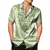 More information about Men's Paisley Ethnic Flowers Satin Shirt Dress Shirt Button Up Shirt Short Sleeve Vintage Retro Vacation Party Evening Wear Daily Summer Spring Turndown Collared Shirts Button Up 3D Print Blue Green