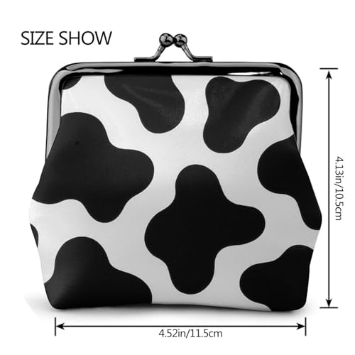 Pu Leather Buckle Coin Purse Black Cow Print Girls Kiss-Lock Change Purse Wallets 5