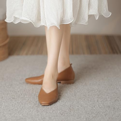 HIPPOSEUS Women's Low Heel Pumps Shoes Slip On Dress Shoes Matte Square Toe Casual Office Shoes 5