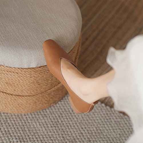 HIPPOSEUS Women's Low Heel Pumps Shoes Slip On Dress Shoes Matte Square Toe Casual Office Shoes 4