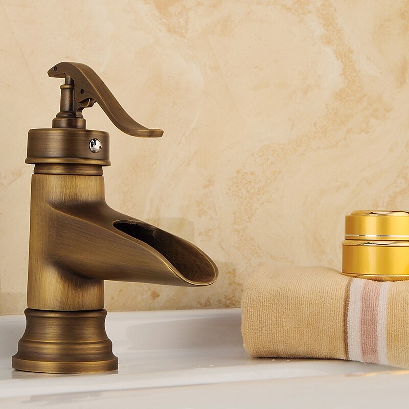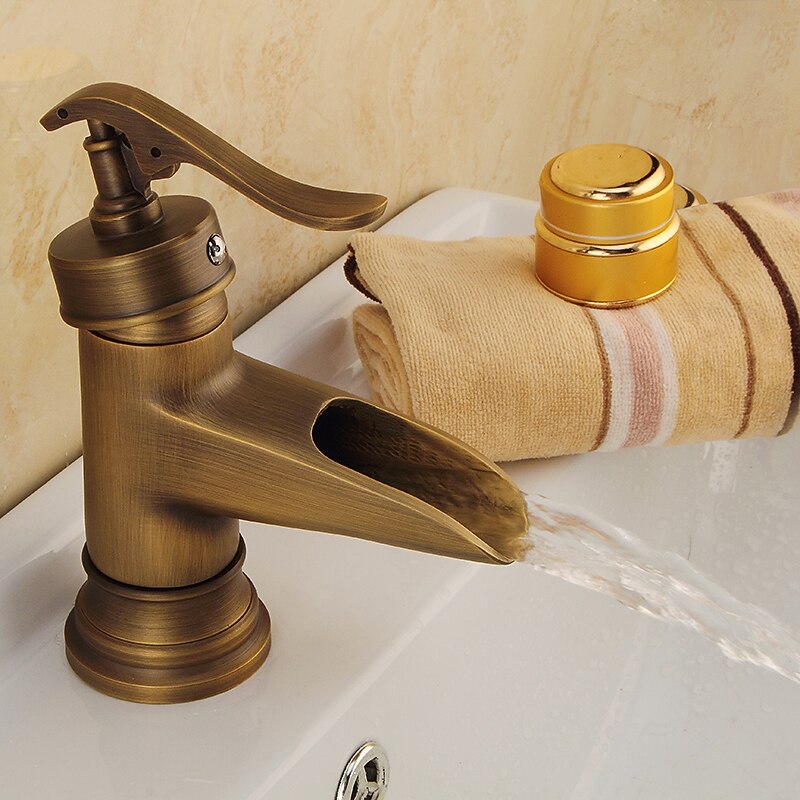 HOT ! Bathroom Sink Faucet,Waterfall Antique Brass Single Handle One Hole Bath Taps with Hot and Cold Switch