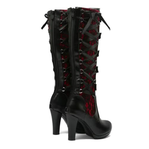 FAIRSOMA Women'S Lace Up Victorian Knee-High Boots,Classics Vintage Round Toe Kitten Heel Witch Boots Knight Combat Boots Buckle Riding Boots 4