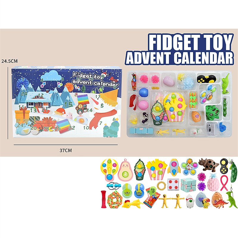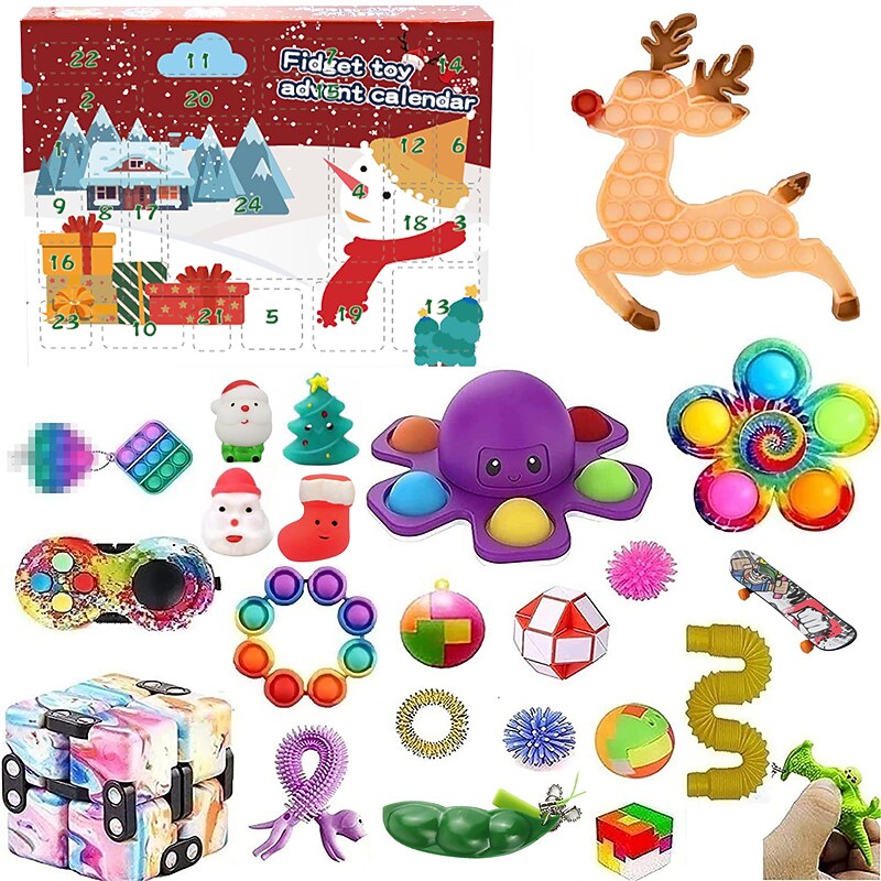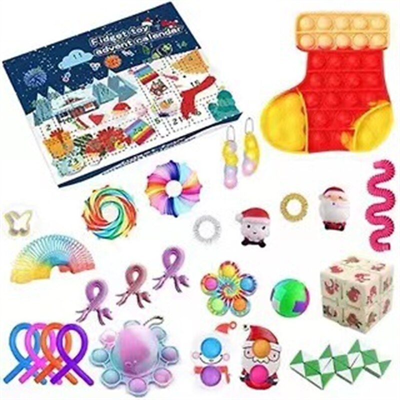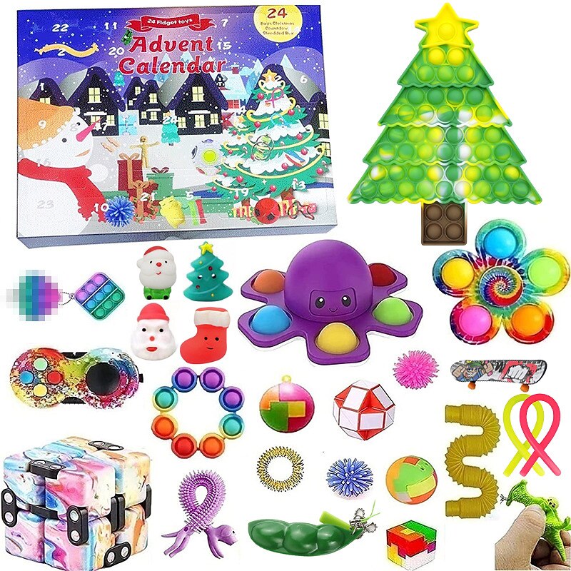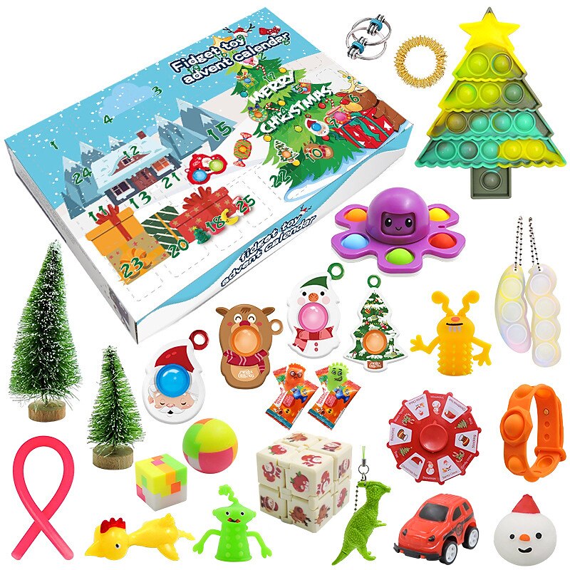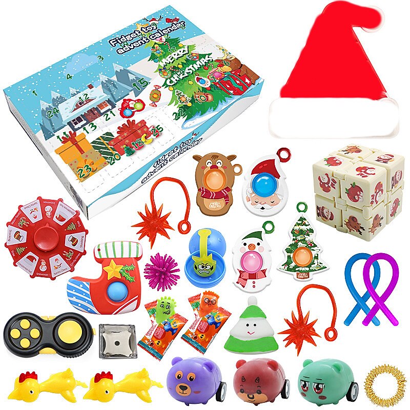 HOT ! Christmas Calendar Countdown Blind Box Hand Tear Box Pinch Lele DIY Decompression and Release Set for Christmas Gifts
