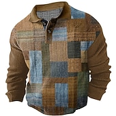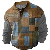 More information about Men's Plaid Waffle Polo Shirts Golf Shirt Long Sleeve Polo Shirts Collared Shirts Vintage Casual Vacation Wear Formal Wear Festival Wear Buttons 3D Print Fall & Winter Black Yellow Brown