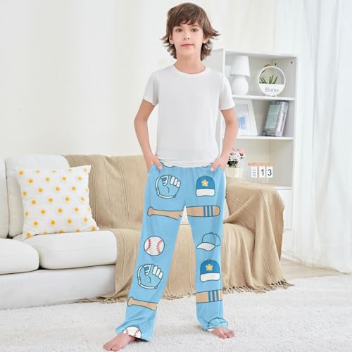 Boy's Pants Baseball Bat Jogger Pants Elastic Waist Long Bottoms Trousers with Pockets 6-14 Years 6