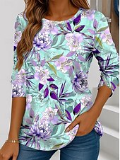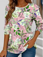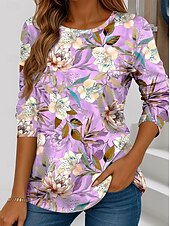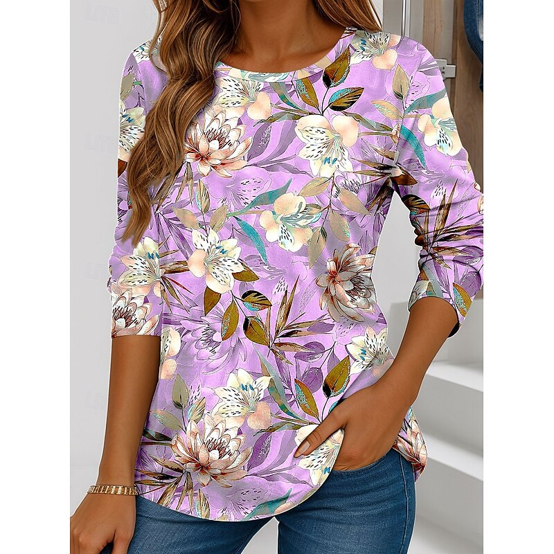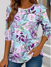 More information about Women's T shirt Long Sleeve Crew Neck Long Sleeve Tunic Floral Graphic Vintage Stylish Classic Regular Tops Daily Weekend Print Pink Blue Purple Green Spring Fall Prefall