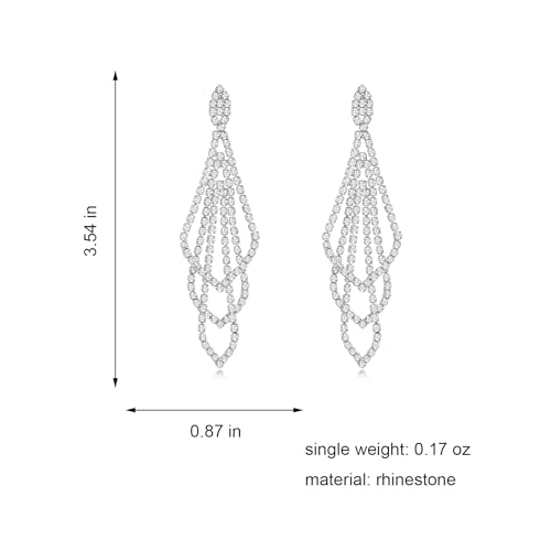 • Rhinestone Earrings Size: Length: 3.54 Inches, Width: 0.87 Inches, single weight: 0.17 oz. Unique chandelier shapes, the long tassel, shining rhinestone. They are absolutely sparkly, elegant, and delicate