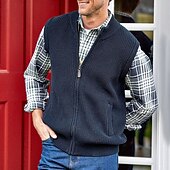 More information about Men's Sweater Sweater Vest Cardigan Sweater Zip Sweater Ribbed Knit Regular Tops Knitted Plain High Neck Vacation Fashion Casual Daily Wear Clothing Apparel Spring & Fall Navy Blue Gray S M L