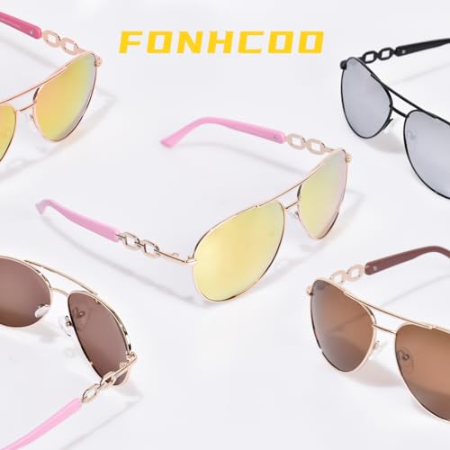 FONHCOO Polarized Sunglasses for Women Men, Oversized Aviator Sunglasses Metal Frame UV400 Protection 6