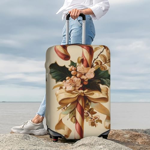 HOT ! Vintage Christmas Candy Cane With Holly Bow Elastic Travel Luggage Covers Dustproof Scratch-Resistant Suitcase Protector Fit 22-24 Inch