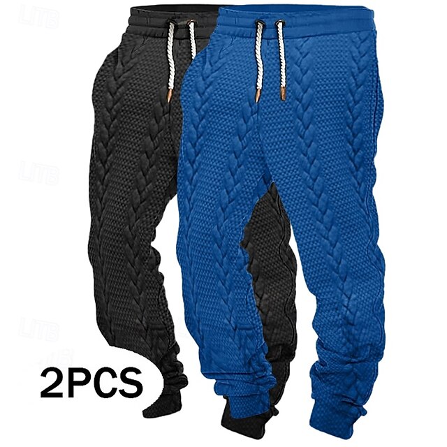Men's Sweatpants Joggers Trousers Casual Pants Jacquard Drawstring Elastic Waist Plain Breathable Full Length Outdoor Casual Daily Sports Fashion White+khaki Black+ Khaki 2