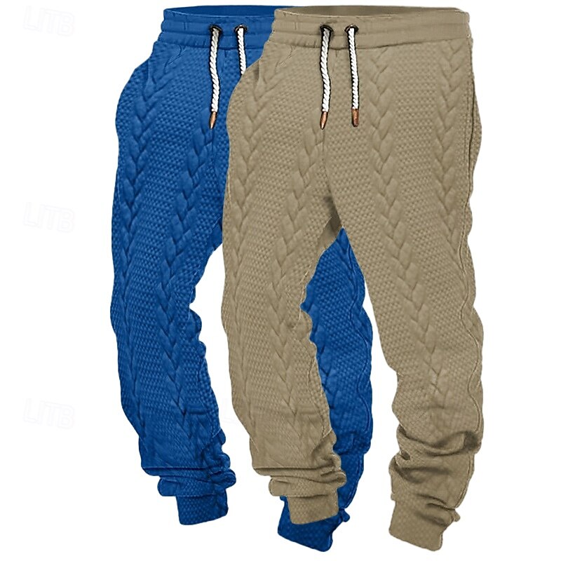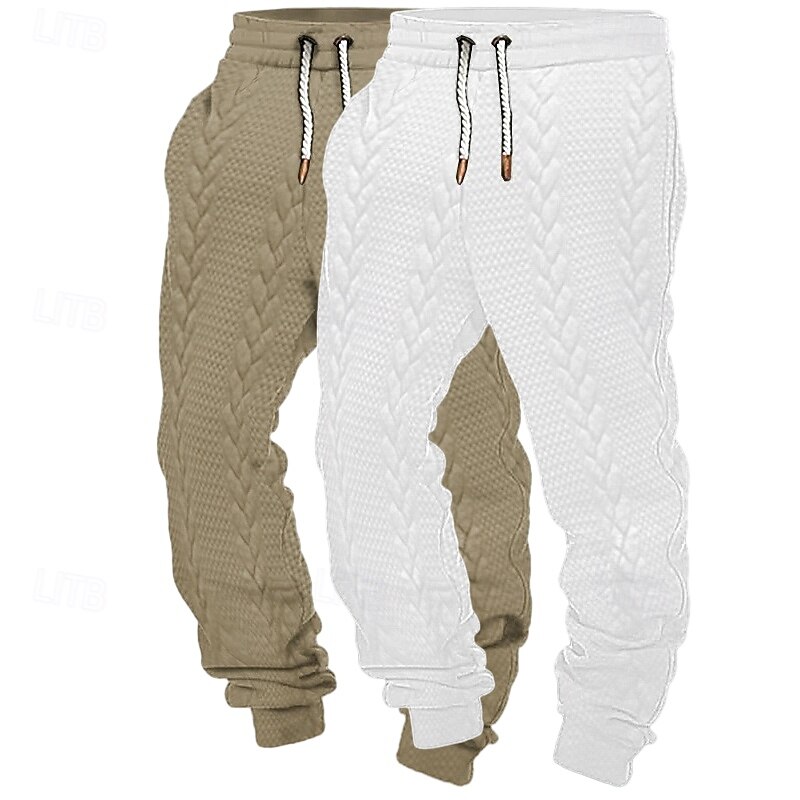 HOT ! Men's Sweatpants Joggers Trousers Casual Pants Jacquard Drawstring Elastic Waist Plain Breathable Full Length Outdoor Casual Daily Sports Fashion White+khaki Black+ Khaki