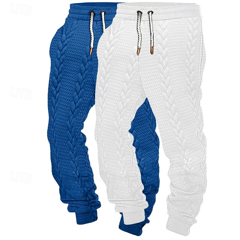 Men's Sweatpants Joggers Trousers Casual Pants Jacquard Drawstring Elastic Waist Plain Breathable Full Length Outdoor Casual Daily Sports Fashion White+khaki Black+ Khaki 12