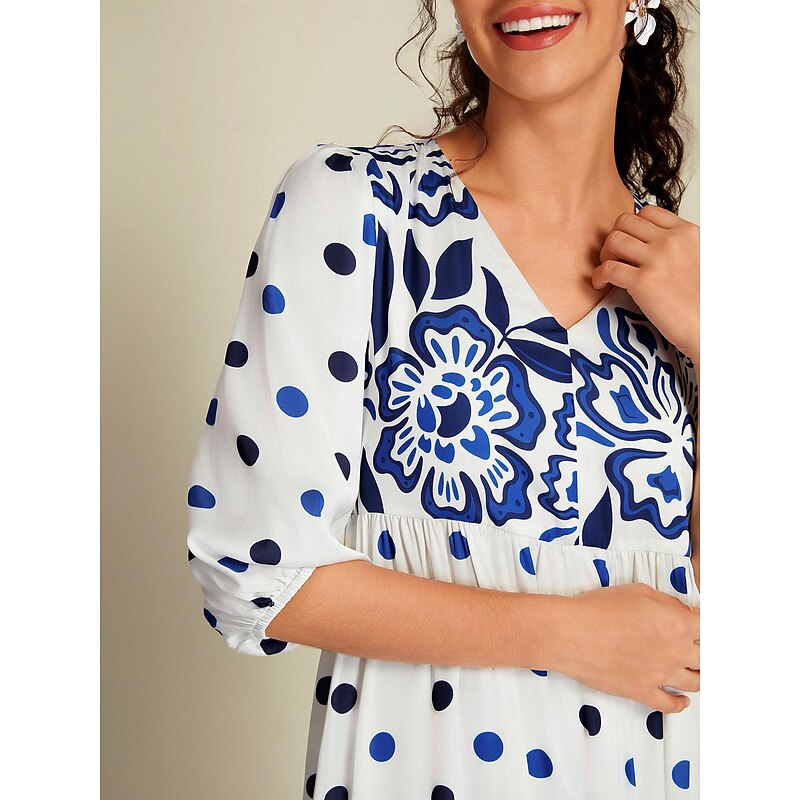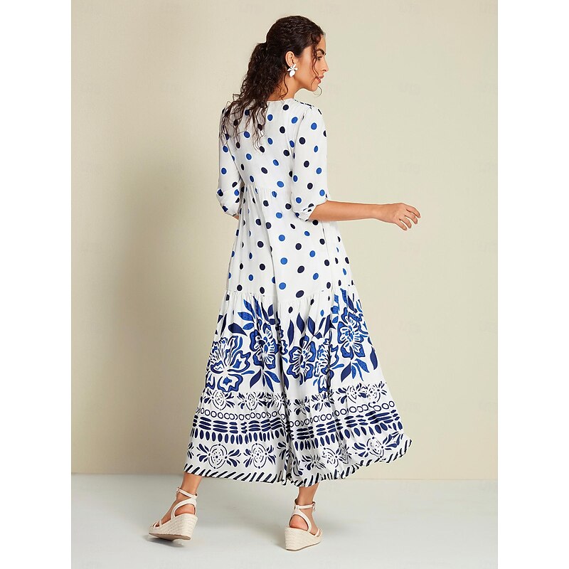 Satin Polka Dot 3/4 Length Sleeve V Neck Maxi Dress 11