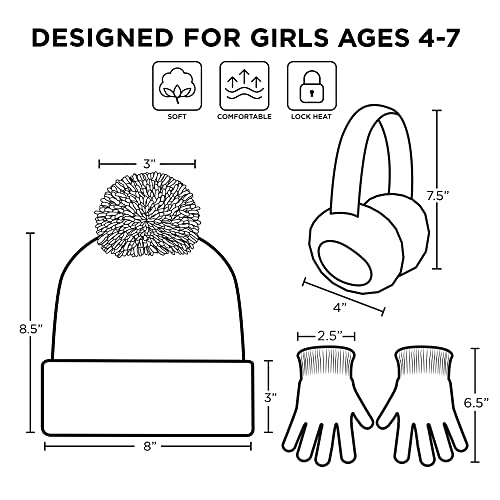 • UNIQUE GIFTS: This adorable Girls Winter Hat, Kids Earmuffs, and Gloves set is the ultimate Gift for any holiday or birthday occasion, and will be the Winter Accessory Set she'll always wear.