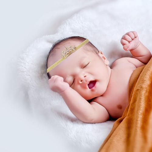 2PCS Baby Girls Crown Headbands Rhinestone Tiara Elastic Hair Accessories For Infants Newborn Toddler Kids Photo Props Gifts 7