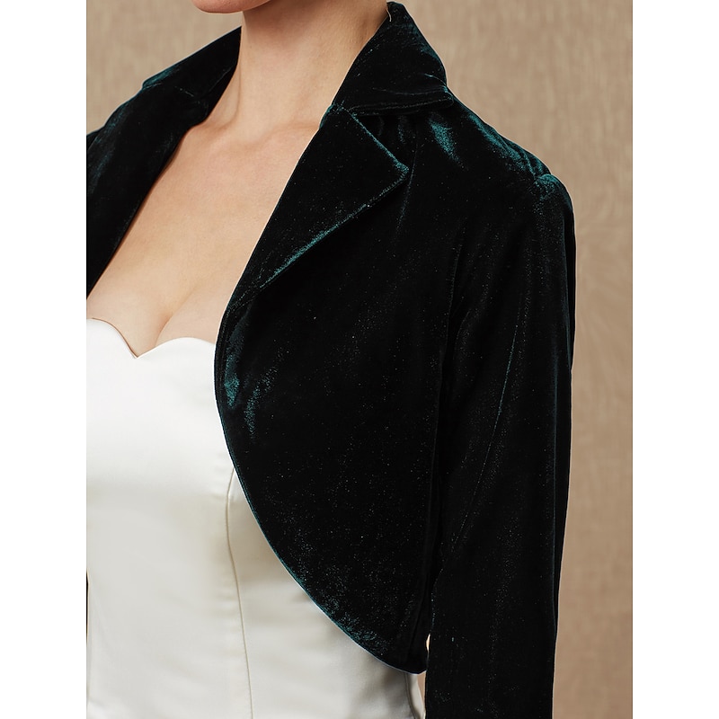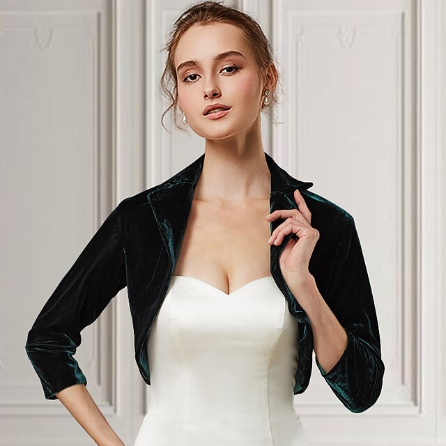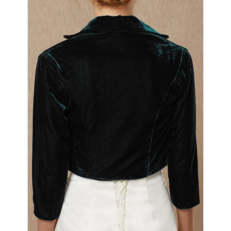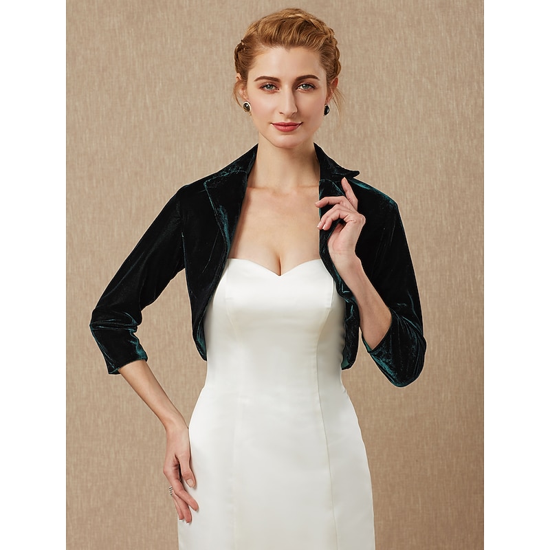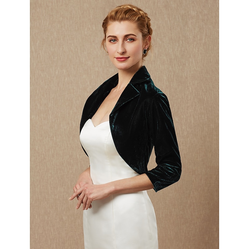 Green Women's Bolero Shrug Velvet Coats / Jackets Elegant Keep Warm 3/4 Length Sleeve Velvet Wedding Guest Wraps With Pure Color For Wedding Fall & Winter dress to impress 1