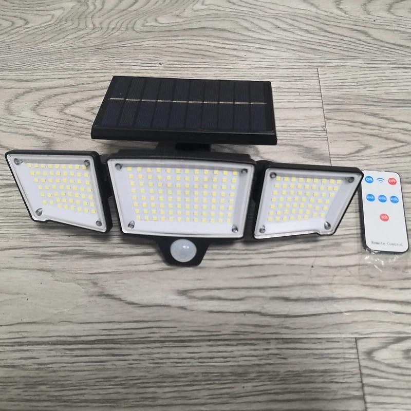 HOT ! Solar Flood Lights Outdoor Lights 3-Head Motion Sensor Light 2500Lumens 210LEDs Safety Light with Remote Control, IP65 Waterproof Wide-Angle Floodlight Wall Light