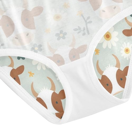 Wusikd Cute Cow Head Girls' Underwear Cotton White Flowers Girls Briefs Soft Toddler Underwear 2T 4