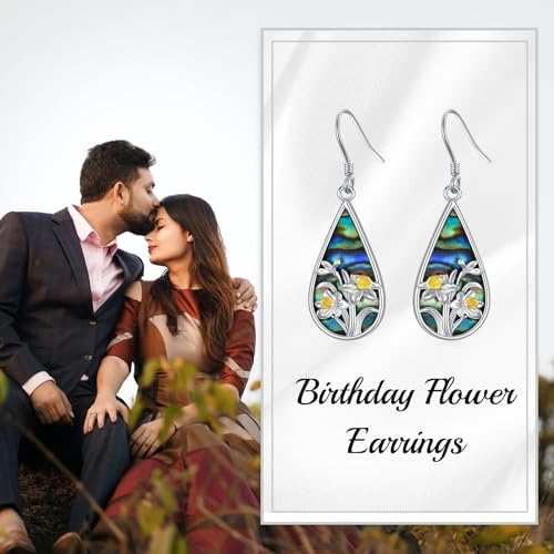 Rose/Daisy/Daffodil/Carnation/Morning Glory Dangle Drop Teardrop Earrings 925 Sterling Silver Birth Month Flower Jewelry Birthday Gifts for Women Girls Mom Wife 4