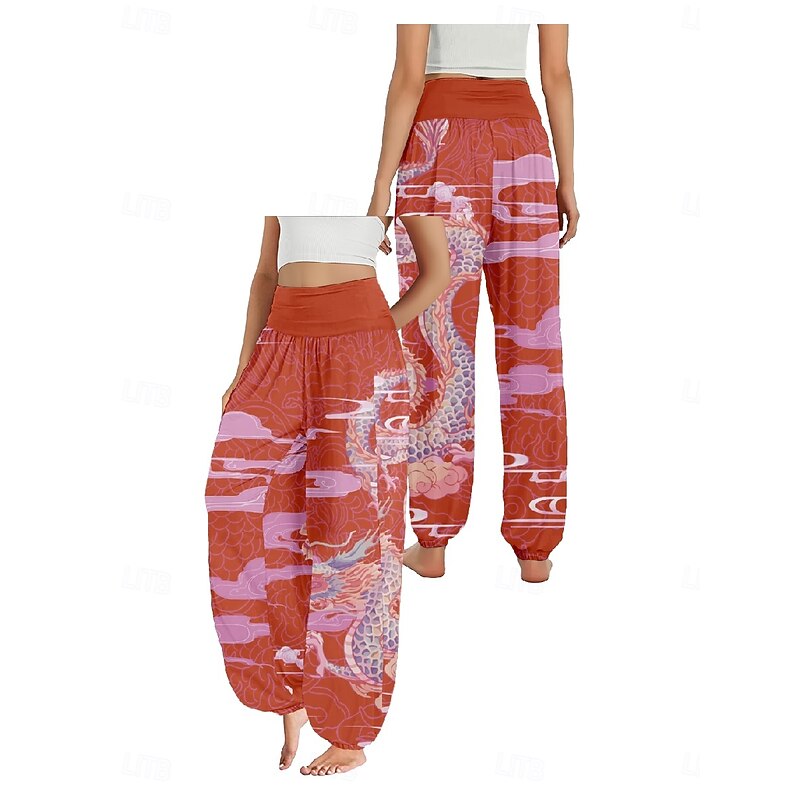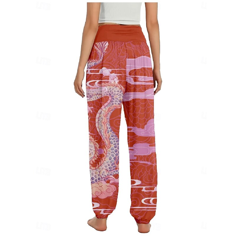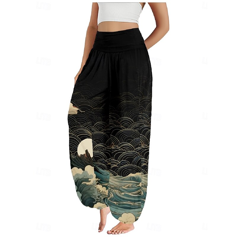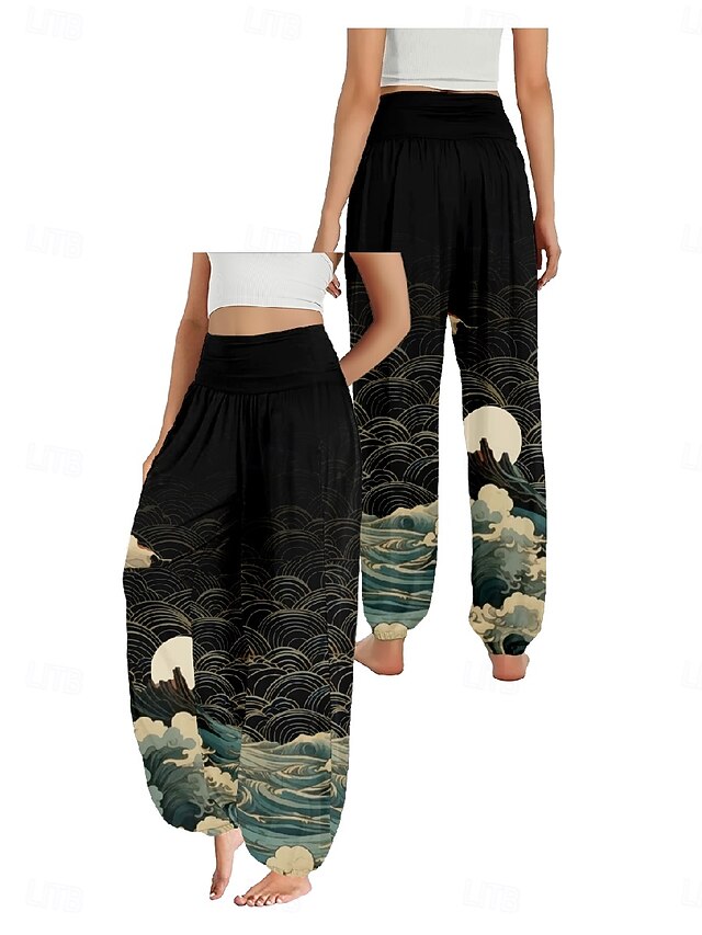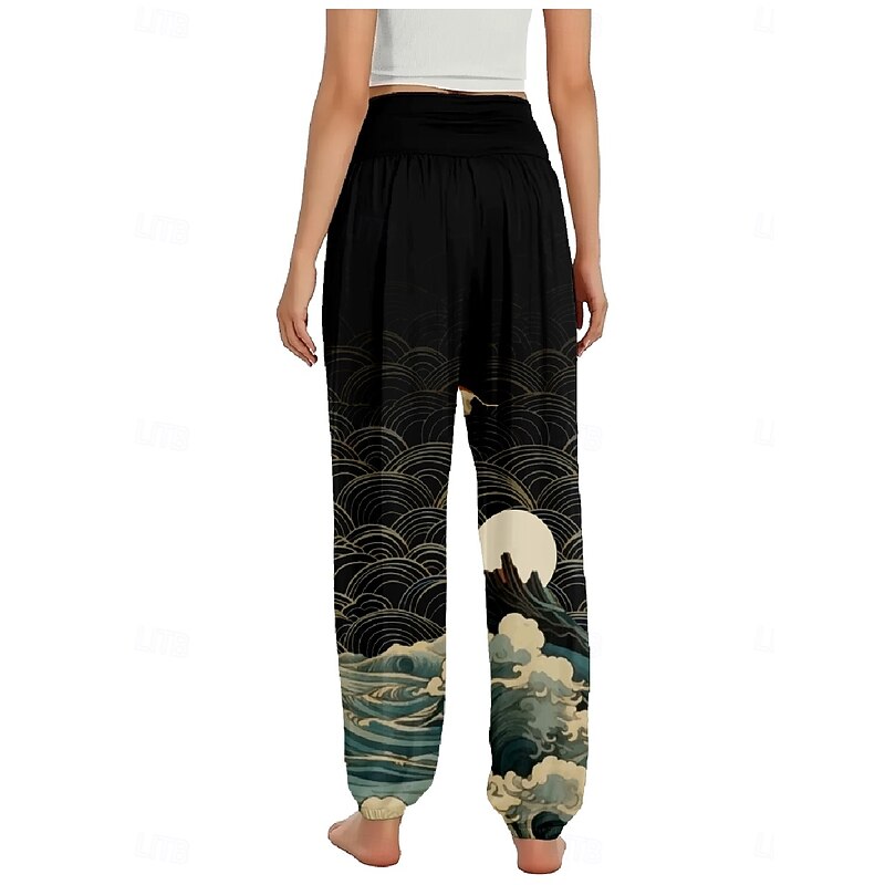 More information about Women's Linen-Inspired Pants Wide Leg Pants Trousers Ethnic Style Casual Boho Full Length High Waist Floral Pocket Elastic Waist Printing Breathability Soft Micro-elastic Outdoor Yoga Black Yellow