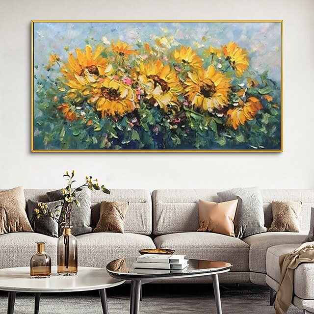 Handmade Oil Painting Canvas Wall Art Decoration Abstract Plant Floral Painting Blooming Sunflower for Home Decor Rolled Frameless Unstretched Painting 1
