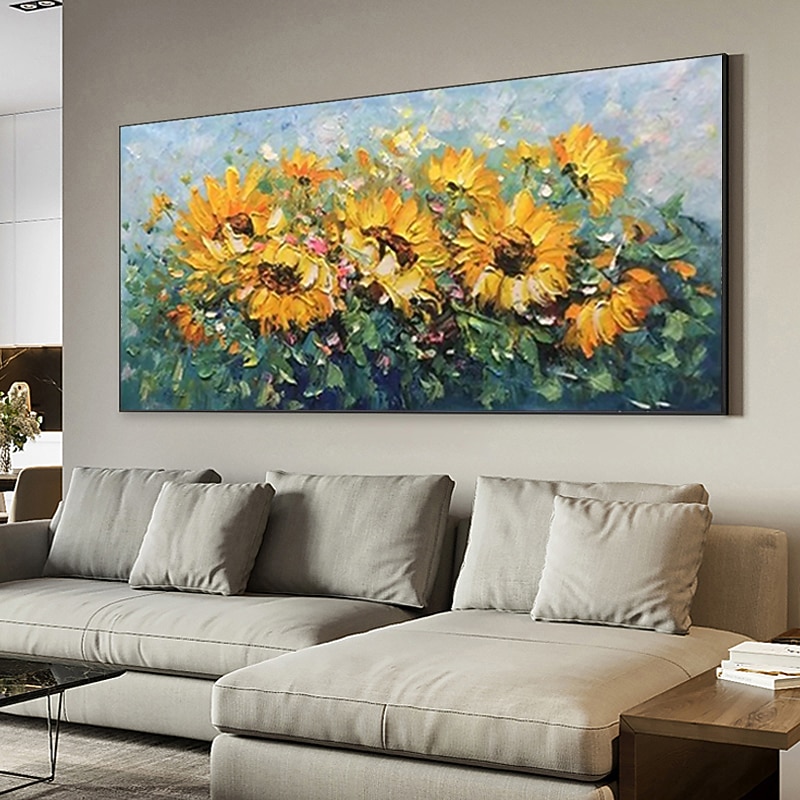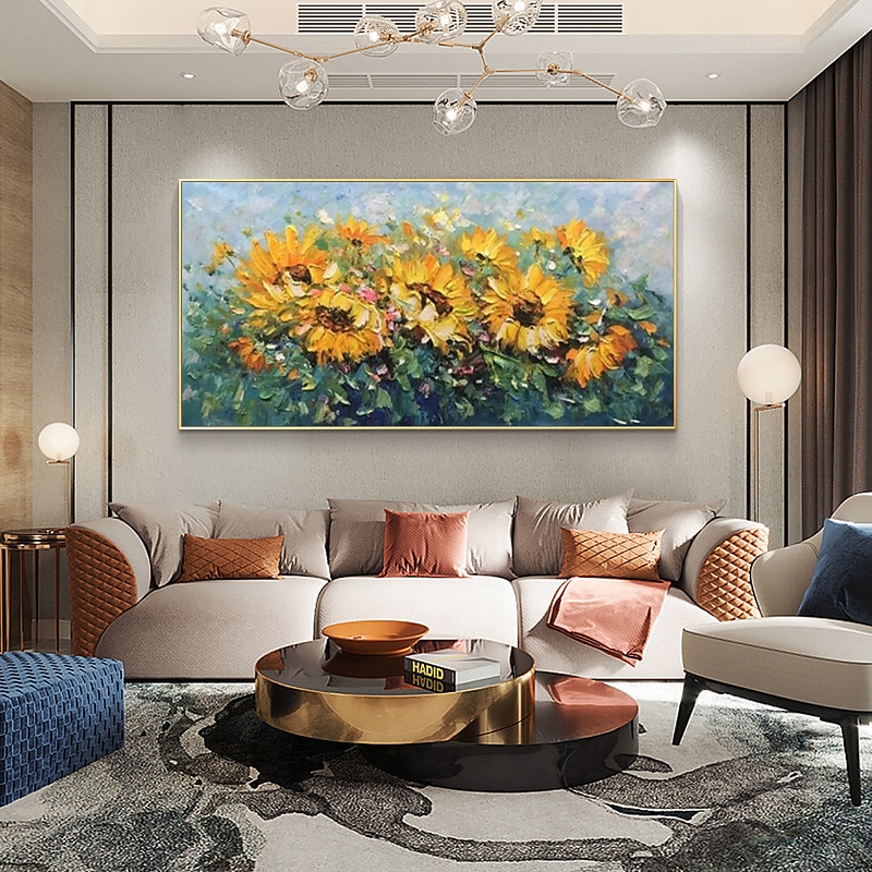 HOT ! Handmade Oil Painting Canvas Wall Art Decoration Abstract Plant Floral Painting Blooming Sunflower for Home Decor Rolled Frameless Unstretched Painting